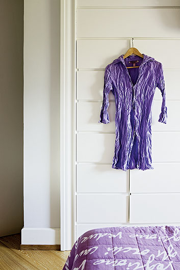 Słabość gospodyni do fioletu widać w tym domu na każdym kroku.