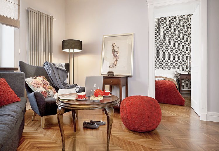 Maria nie lubi hoteli. Kupiła więc małe mieszkanko. Czeka na nią, gdy w interesach wpada do stolicy. Eleganckie i z charakterem, jak właścicielka. Początek jak z filmu. Właścicielka Maria i architektka Maria poznały się w pociągu. Potem było jeszcze bardziej filmowo, bo pierwsza właśnie kupiła mieszkanie i, mocno zapracowana, dała drugiej nie tylko klucze do garsoniery, ale i wolną rękę; ustaliły jedynie budżet. To się nazywa zaufanie i chemia! Mieszkanko malutki
