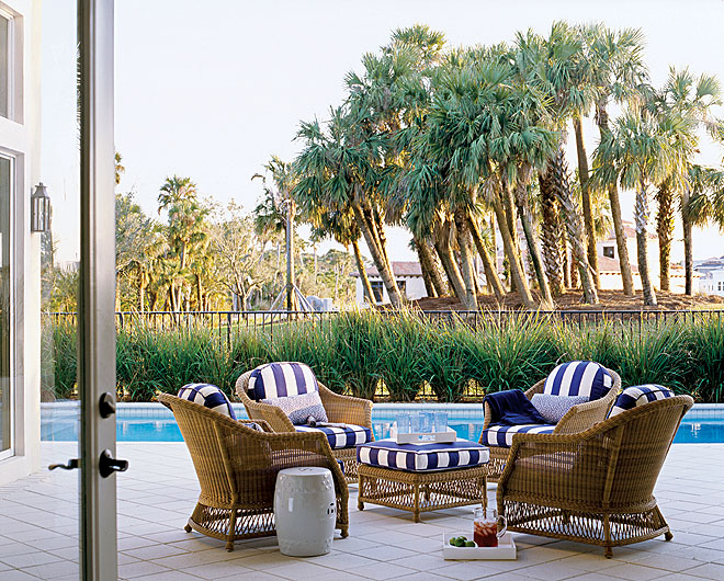 Rattanowe meble ogrodowe sprawdzają sie na goroącej Florydzie.