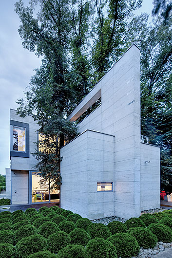 Mocnym akcentem jest przecinająca dom ściana, która wychodzi aż do ogrodu.