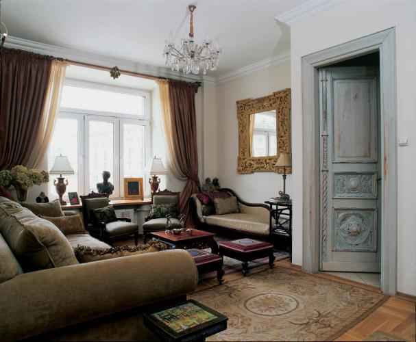 Rzeźbione drzwi w salonie. Doprawione Orientem