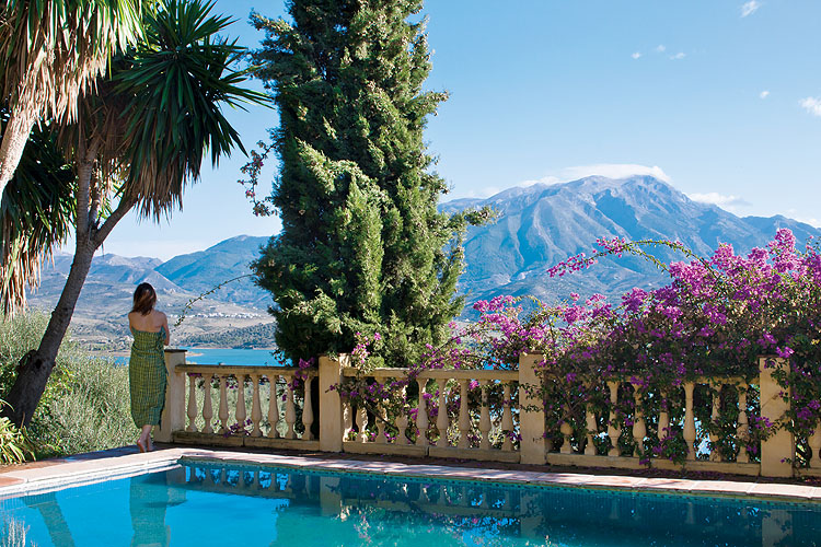 Wioska Los Castillejos przycupnęła na zboczu góry. Ze wschodnich tarasów widać szmaragdowe jezioro Embalse de