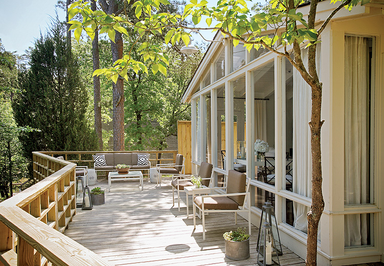 W założeniu dom miał być urządzony tak, by panował w nim przede wszystkim spokój. Taras i salon wydają się