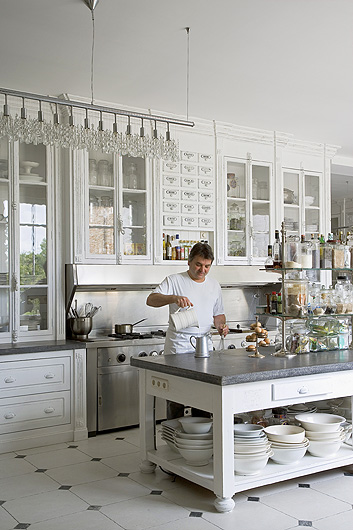 Drzwi do kredensu zrobione z francuskich okien. Oryginalne są także szyby. Wyspa stała kiedyś w kuchni klasztornej.