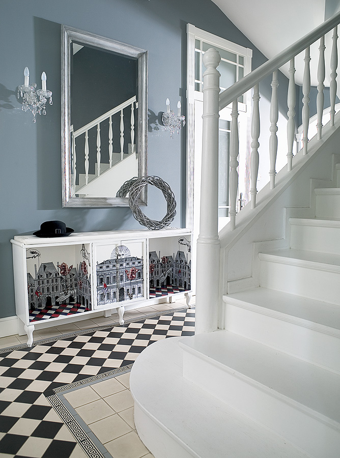 W holu, podobnie jak w kuchni dominuje wzór wiktoriański. Kafle na podłodze przyjechały z angielskiej manufaktury.