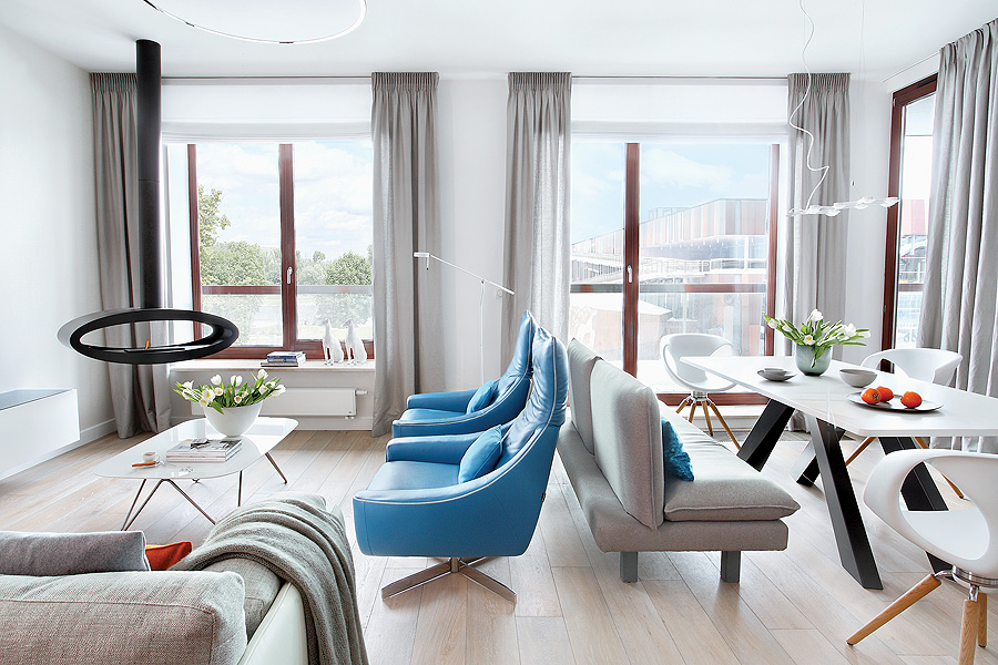 Tym mieszkaniem cały czas można się cieszyć i coś w nim odkrywać, bo projektantka Katarzyna Koszałka pomyślała nie tylko o wygodzie i luksusie, ale i niespodziankach. Właściciele apartamentu na co dzień mieszkają poza Warszawą. Ale kiedy tylko chcą, mogą wpadać do stolicy zorganizować u siebie biznesowe spotkanie, zaprosić znajomych albo zostać na dłużej (mają trójkę dzieci). Swój drugi dom znaleźli pięć minut od centrum, na Powiślu. Zanim jednak podjęli decyz