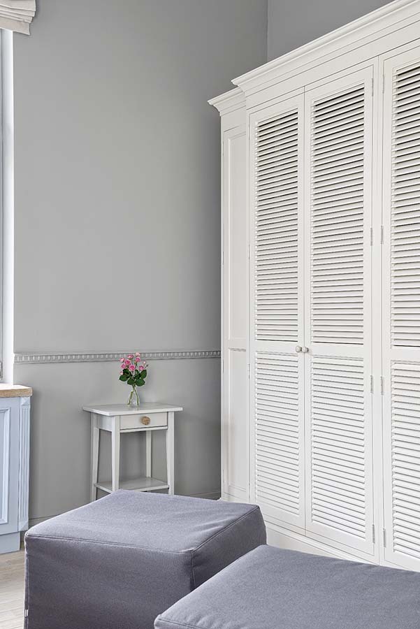 Łóżko ukryte jest w szafie. Niewielkie mieszkanie w sopockiej kamienicy
