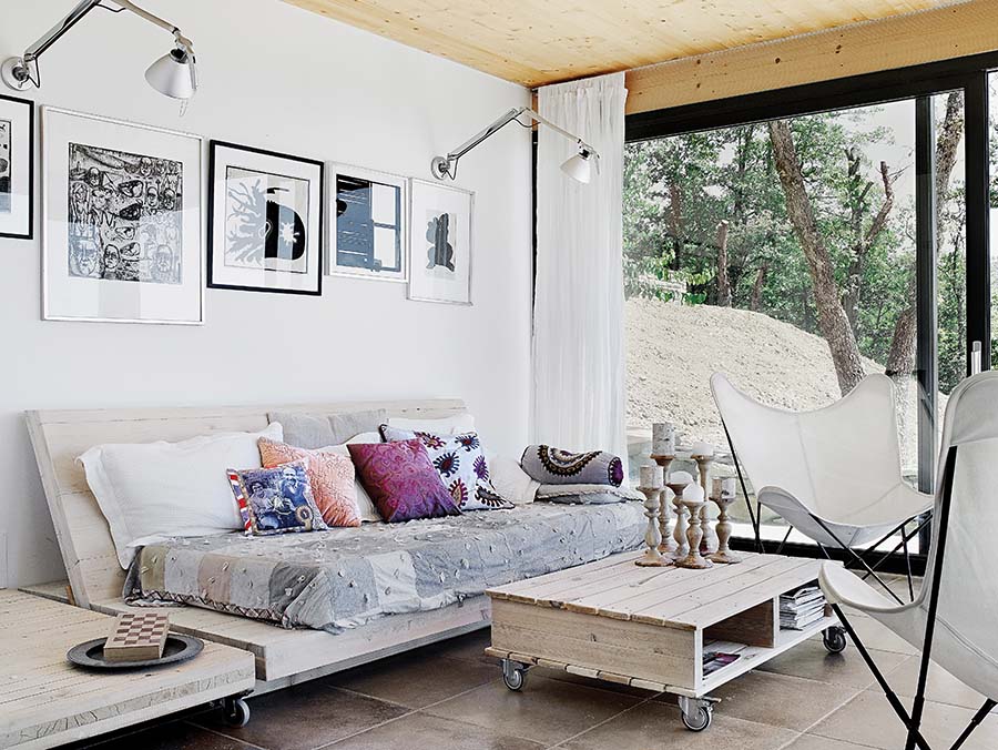 z desek, które zostały z budowy, kristian i lise zrobili wiele mebli. wyglądają naturalnie, jak na wakacyjny dom przystało.