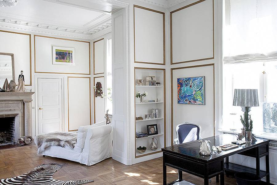 ­Kiedy za urządzanie bierze się kobieta z artystycznym zacięciem, nawet stare ogromne pałacowe wnętrza robią się przytulne. Cathrine Oxholm projektuje piękne swetry z kaszmiru. Proste, w stonowanych szarościach, utkane z najlepszej przędzy. Są cudownie miękkie i puszyste, a na plecach mają... trupie czachy albo wysadzane kryształkami Swarovskiego różne hasła. Bo Cathrine nie lubi grzecznej oczywistości, woli rzeczy charakterne. Doskonale widać to w jej domu w Kopenhadze,