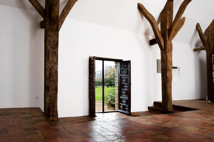 Jak w folwarku sprzed pięciuset lat- kamienne ściany kryje chropowaty tynk, strop podtrzymują spękane drewniane