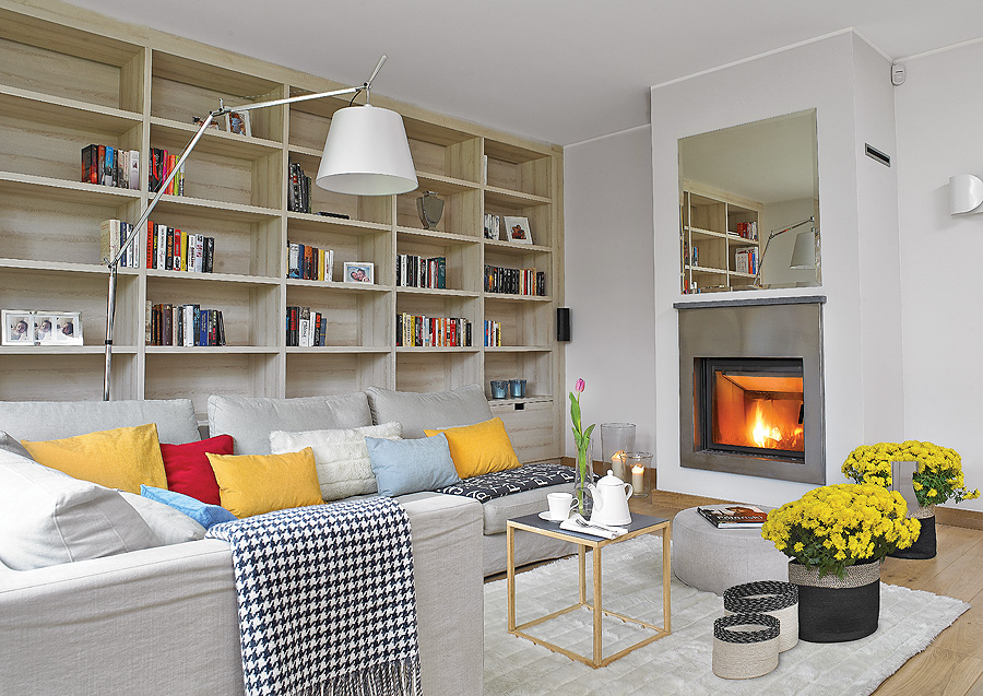 • salon z kominkiem