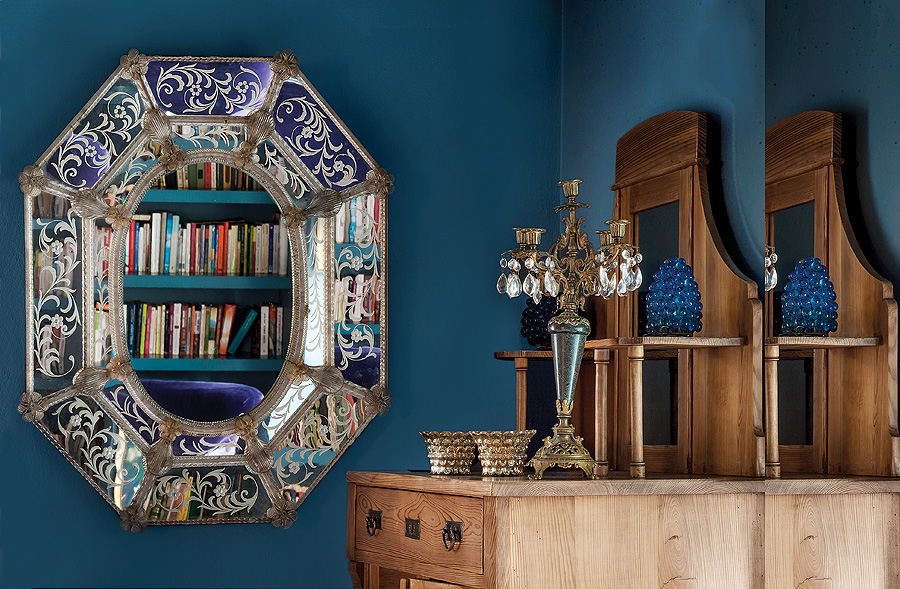 Wszędobylskie weneckie lustra i lampy – każda inna, bo jest i kultowa Midsummer od Torda Boontjego, i prosta, szklana