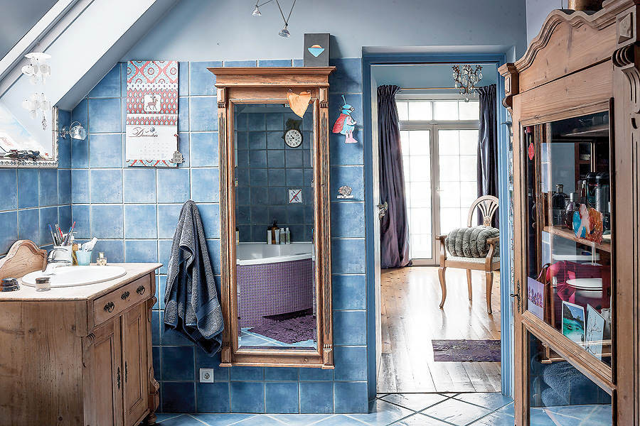 Całe wnętrze powstało z myślą o kolekcji niebieskich filiżanek i deseczek z wzorem cebulowym.