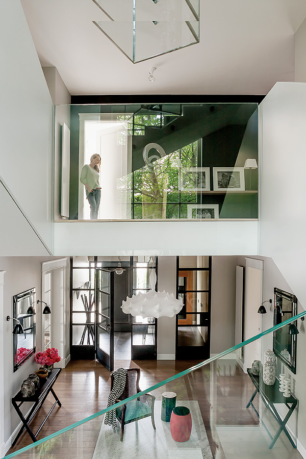 W tym domu ważna jest symetria: stąd dwie konsole, dwa lustra i czarne kinkiety Bestlite marki Gubi (inspiracją była
