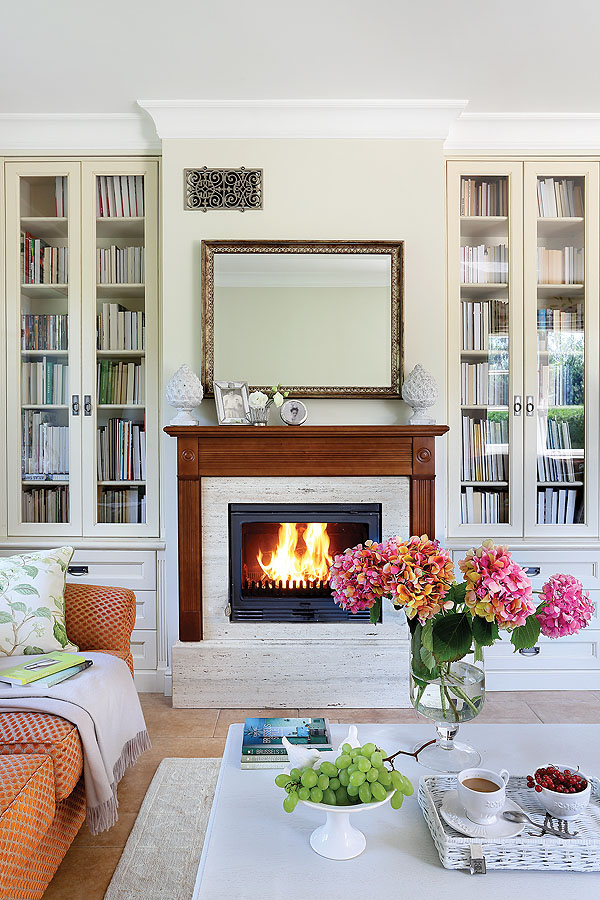 • salon z kominkiem
