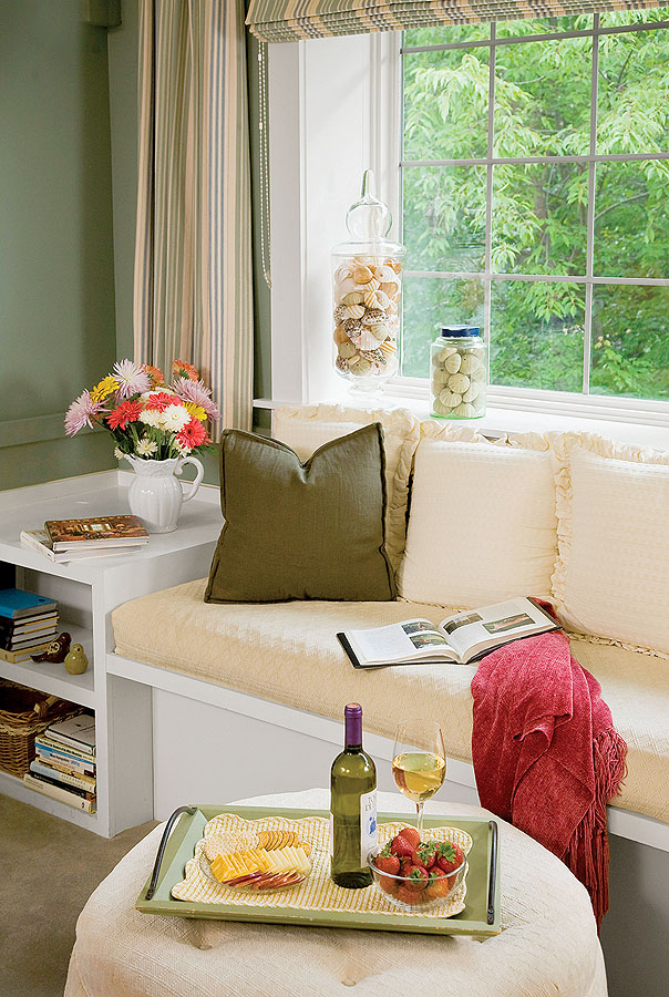 Jak to urządzić?Masz szeroki parapet? Wystarczy cienki materac i kilka miękkich poduszek, by zrobić z niego przytulne i wygodne siedzisko pod oknem.