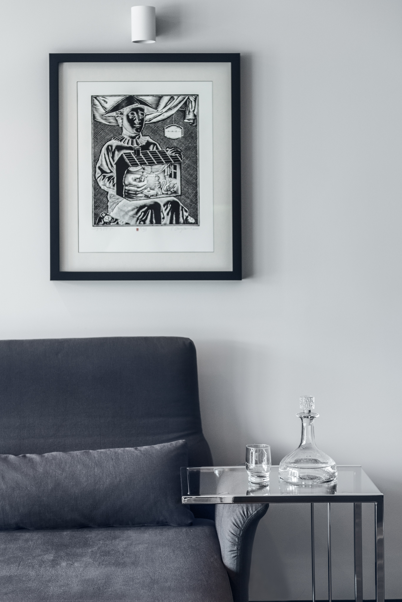 120-metrowy apartament w Gdyni to połączenie wysmakowanej nowoczesności, stylowych dodatków i ciepłych zgaszonych odcieni lazuru i szarości. Oto eleganckie mieszkanie miłośnika dobrej lektury, wina i podróży po świecie.   Wielkomiejski eklektyzm Każdy przedmiot znajdujący się w tym mieszkaniu jest uosobieniem zarówno pracy, jak i stylu życia gospodarza. W mieszkaniu panuje zdecydowanie męski klimat – także w kolorystyce: dominują piękne zgaszone lazury,