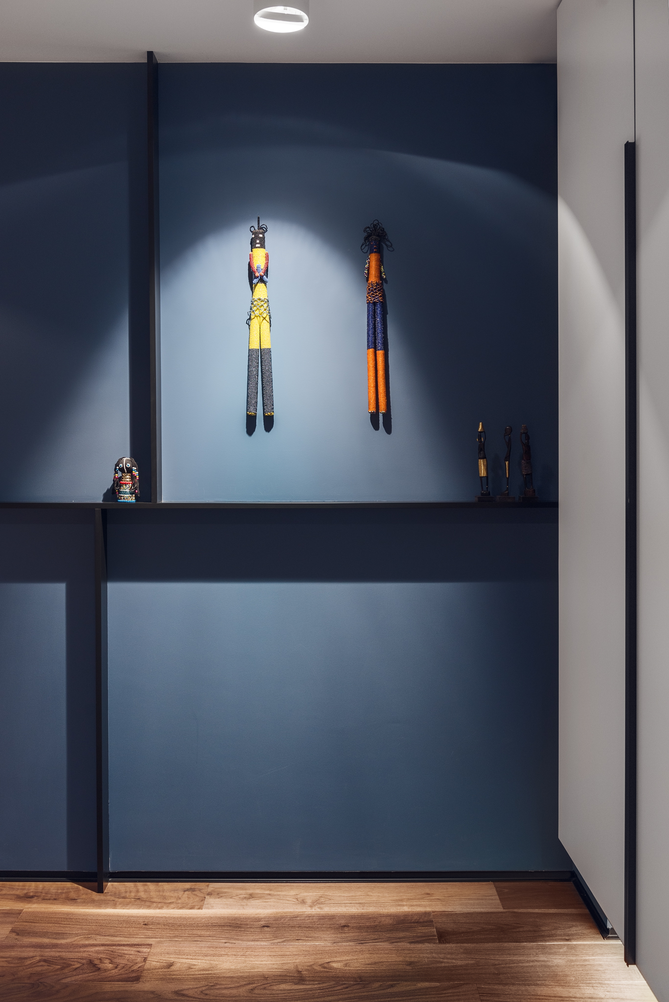 120-metrowy apartament w Gdyni to połączenie wysmakowanej nowoczesności, stylowych dodatków i ciepłych zgaszonych odcieni lazuru i szarości. Oto eleganckie mieszkanie miłośnika dobrej lektury, wina i podróży po świecie.   Wielkomiejski eklektyzm Każdy przedmiot znajdujący się w tym mieszkaniu jest uosobieniem zarówno pracy, jak i stylu życia gospodarza. W mieszkaniu panuje zdecydowanie męski klimat – także w kolorystyce: dominują piękne zgaszone lazury,
