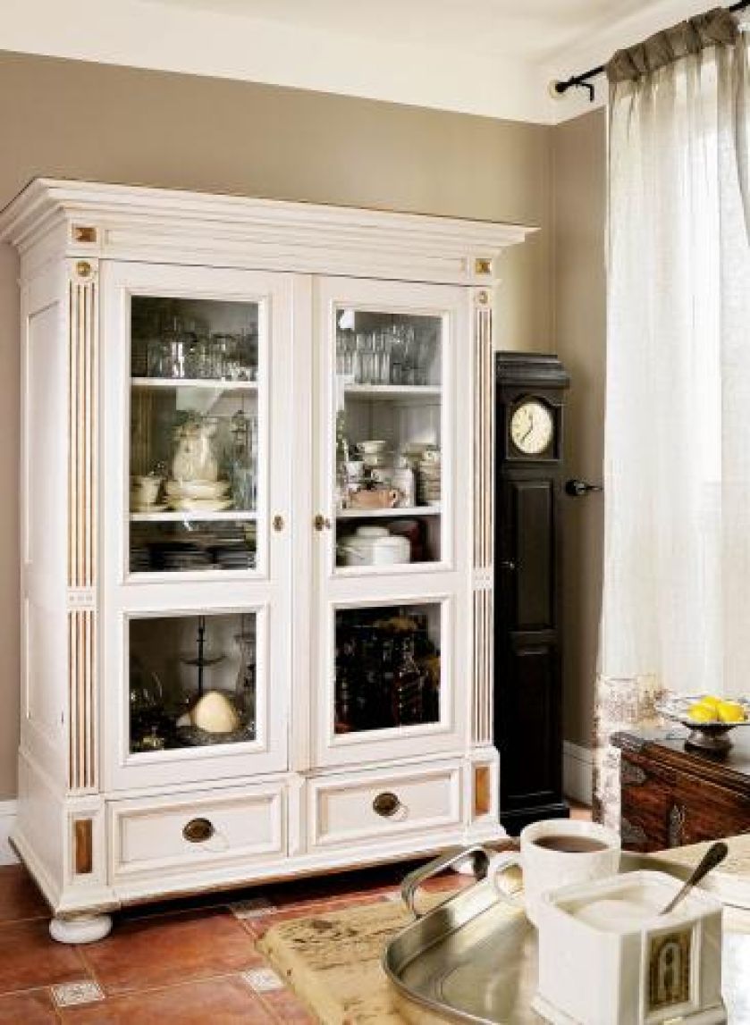 Szafa pomalowana na biało ze złotymi akcentami.