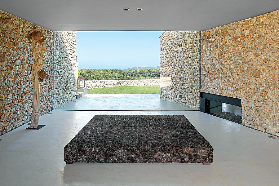 W domu oprócz drewna wykorzystano sporo kamienia.