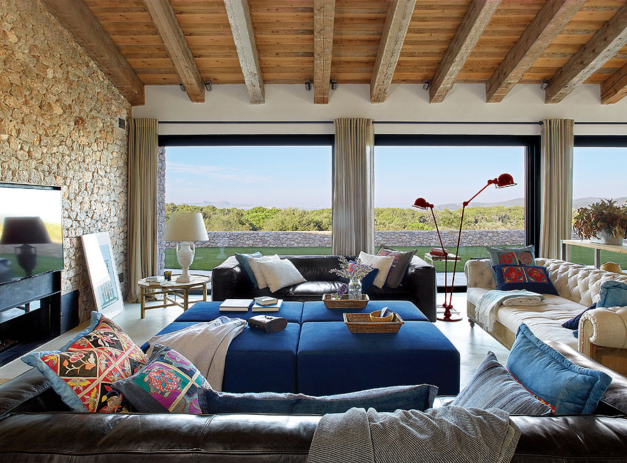 Superwygodny salon z wielkimi pufami - na każdego domownika przypada jedna.