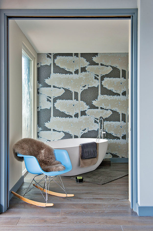 Dom nad jeziorem jest ogromny. Króluje w nim szarość, którą ogrzewają żółte dodatki i drewno z modrzewia syberyjskiego. Są