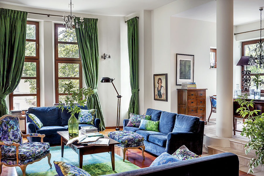 Wystarczyło zamienić beż na zielenie, by spokojny apartament w willi na starym Mokotowie zmienił się nie do poznania...
