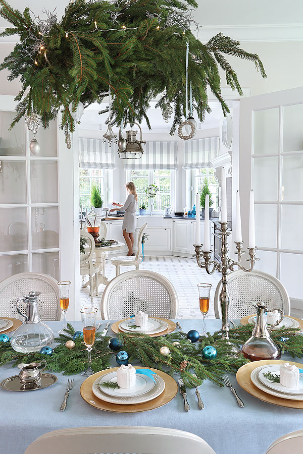 Świąteczne dekoracje stołu. Rodzina czeka pierwszej gwiazdki