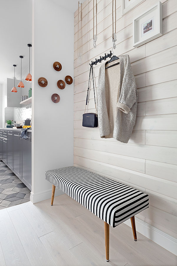To mieszkanie to spełnione marzenie o Skandynawii w ciepłym wydaniu, ze starym drewnem i tkaninami. Z miejscem na ślubny prezent i domową galerię.