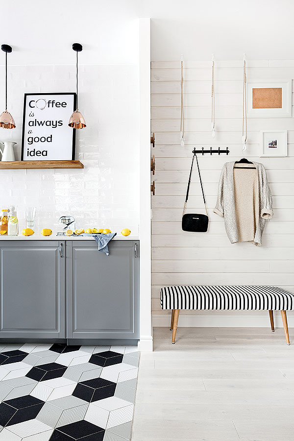 To mieszkanie to spełnione marzenie o Skandynawii w ciepłym wydaniu, ze starym drewnem i tkaninami. Z miejscem na ślubny prezent i domową galerię.