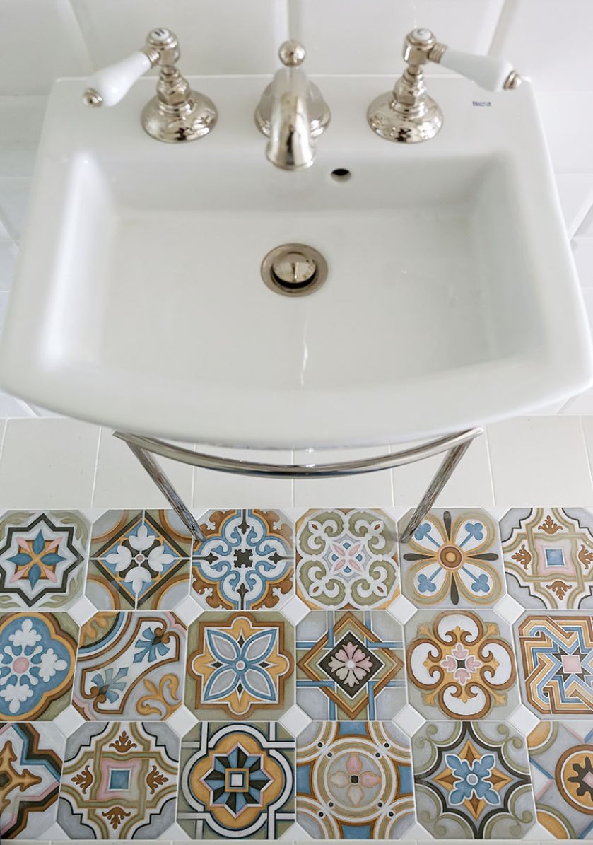 • kolorowa mozaika pod prysznicem w łazience