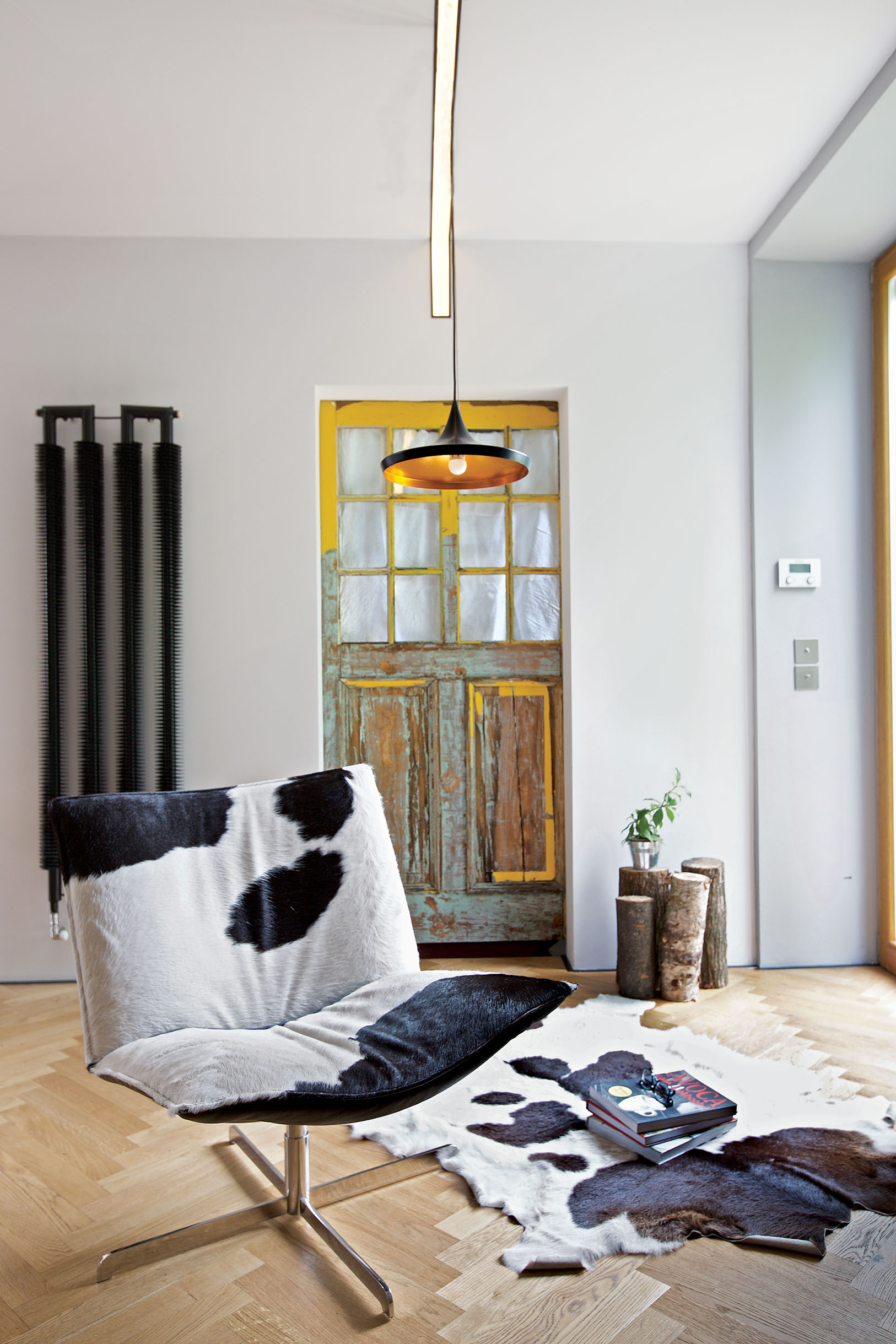 Parkiet na ścianie, światło ukryte w szczelinach, konsola z gazet, drzwi ledwie maźnięte farbą... U Dominiki nie można się nudzić!