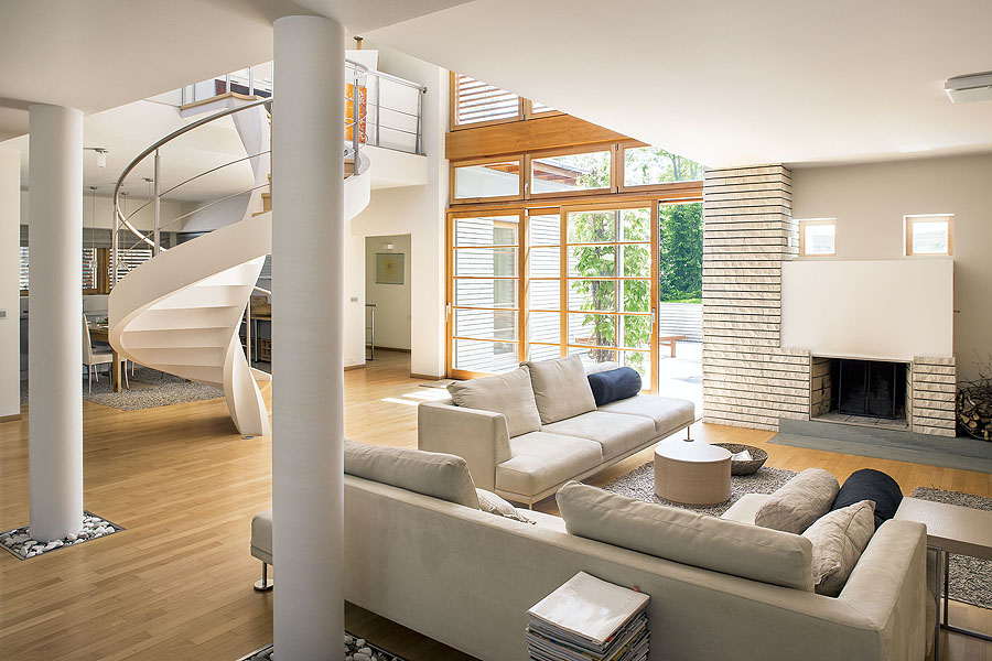 Bez filongów i ćwierćwałków, za to z mnóstwem drewna, bo bez niego dom jest zimny jak salon samochodowy. Pośrodku Ula i Andrzej Mogielniccy ustawili niezwykłą rzeźbę – włoskie schody.     Okolica piękna, sąsiedzi fajni i niedaleko do miasta Jestem wariatką architektoniczną – śmieje się Ula Mogielnicka, wspominając, ile już mieszkań wymyśliła  i urządziła. Zanim pojawił się dom, mieszkała z mężem Andrzejem – znanym autorem tekstów
