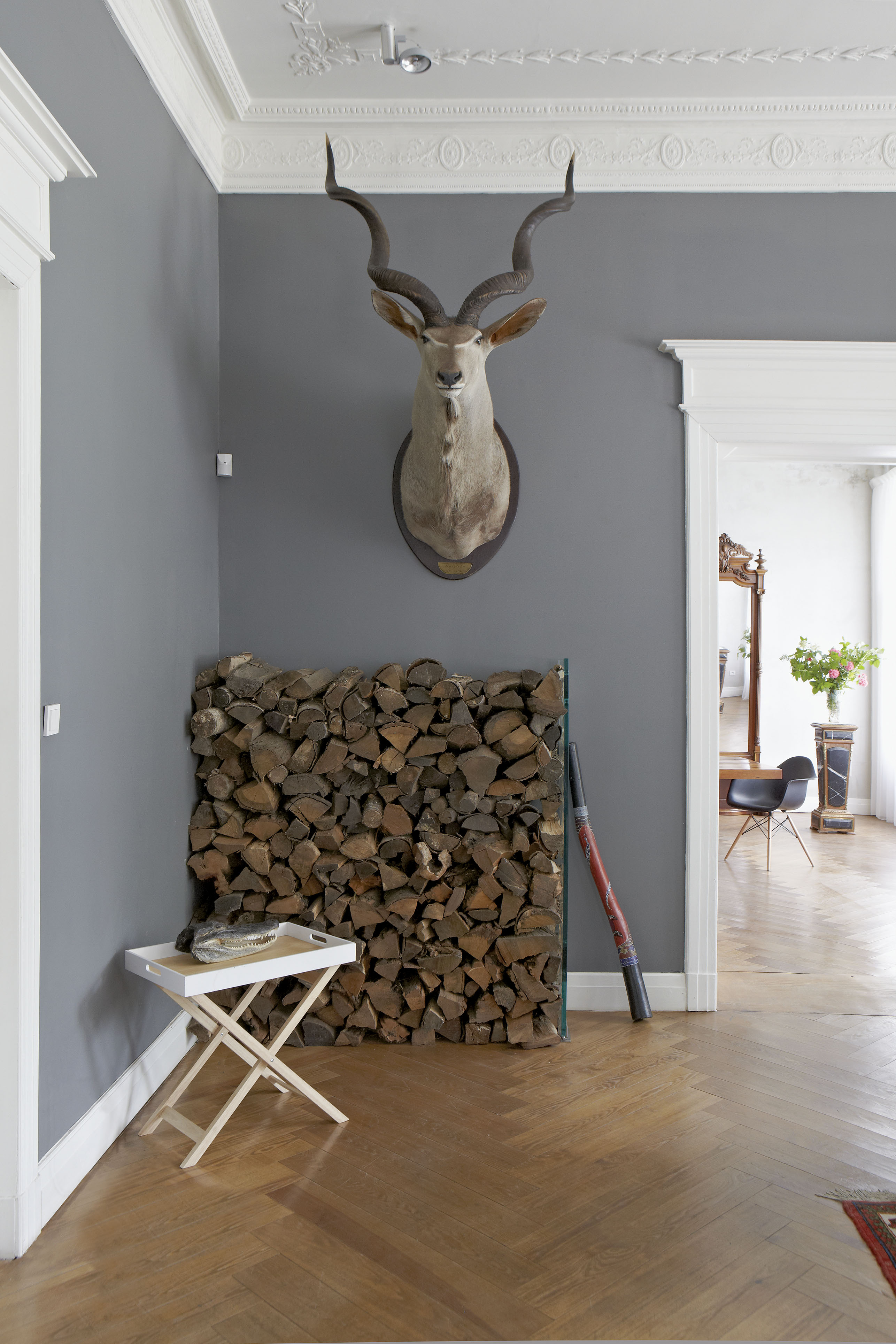 Mnóstwo niebanalnych pomysłów. Zamiast koszy na drewno do palenia w piecach – dekoracyjne akwarium z grubą szklaną taflą.