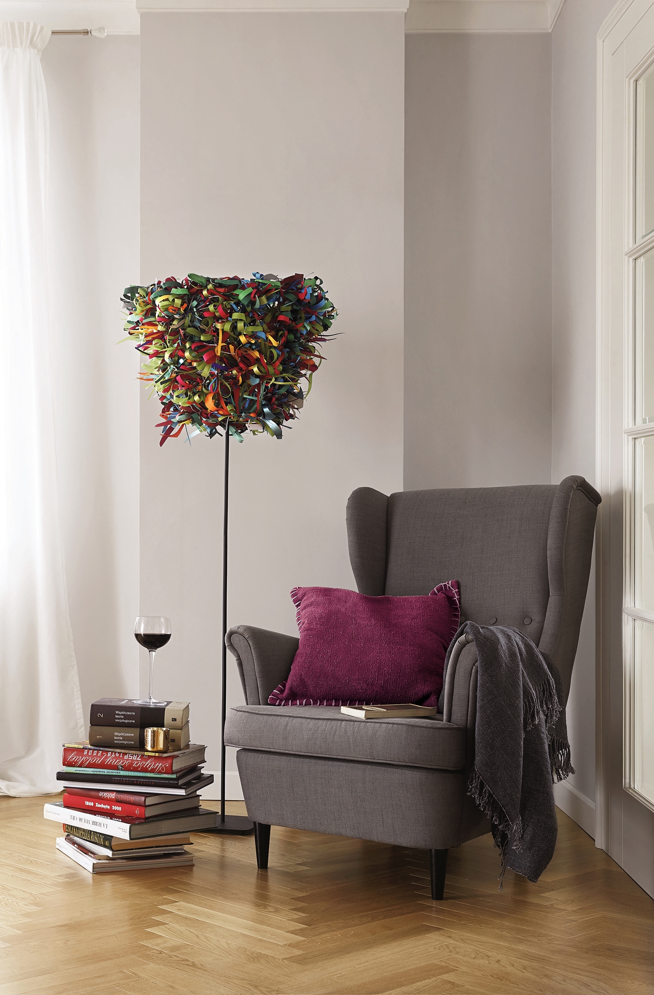 • zasłony do ciemnoszarego salonu