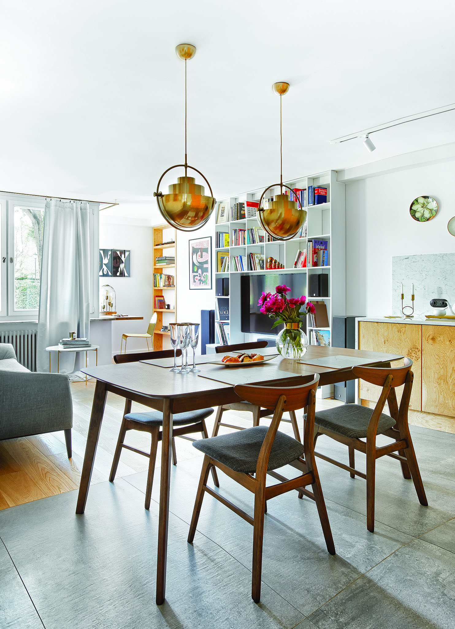 Kraków spotyka się z Warszawą, a klasyczna elegancja ze współczesnością. Mieszkanie w kamienicy z lat 80. jest tak samo nowoczesne, jak klasyczne. Sznytu wszystkiemu dodaje mosiądz.