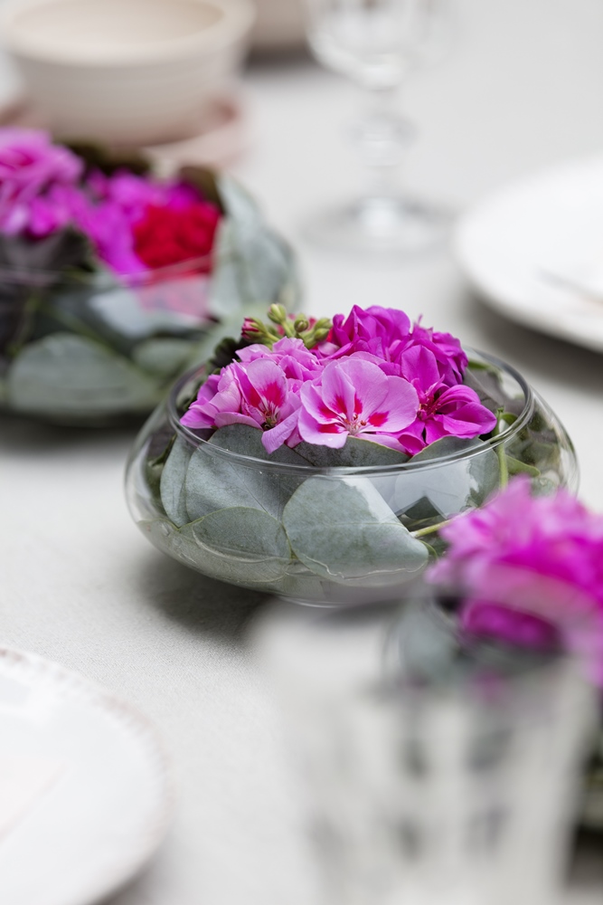 Piękna i oryginalna dekoracja stołu, która zrobi wrażenie na gościach? Własnoręcznie ułożone bukiety i ozdoby z pelargonii!