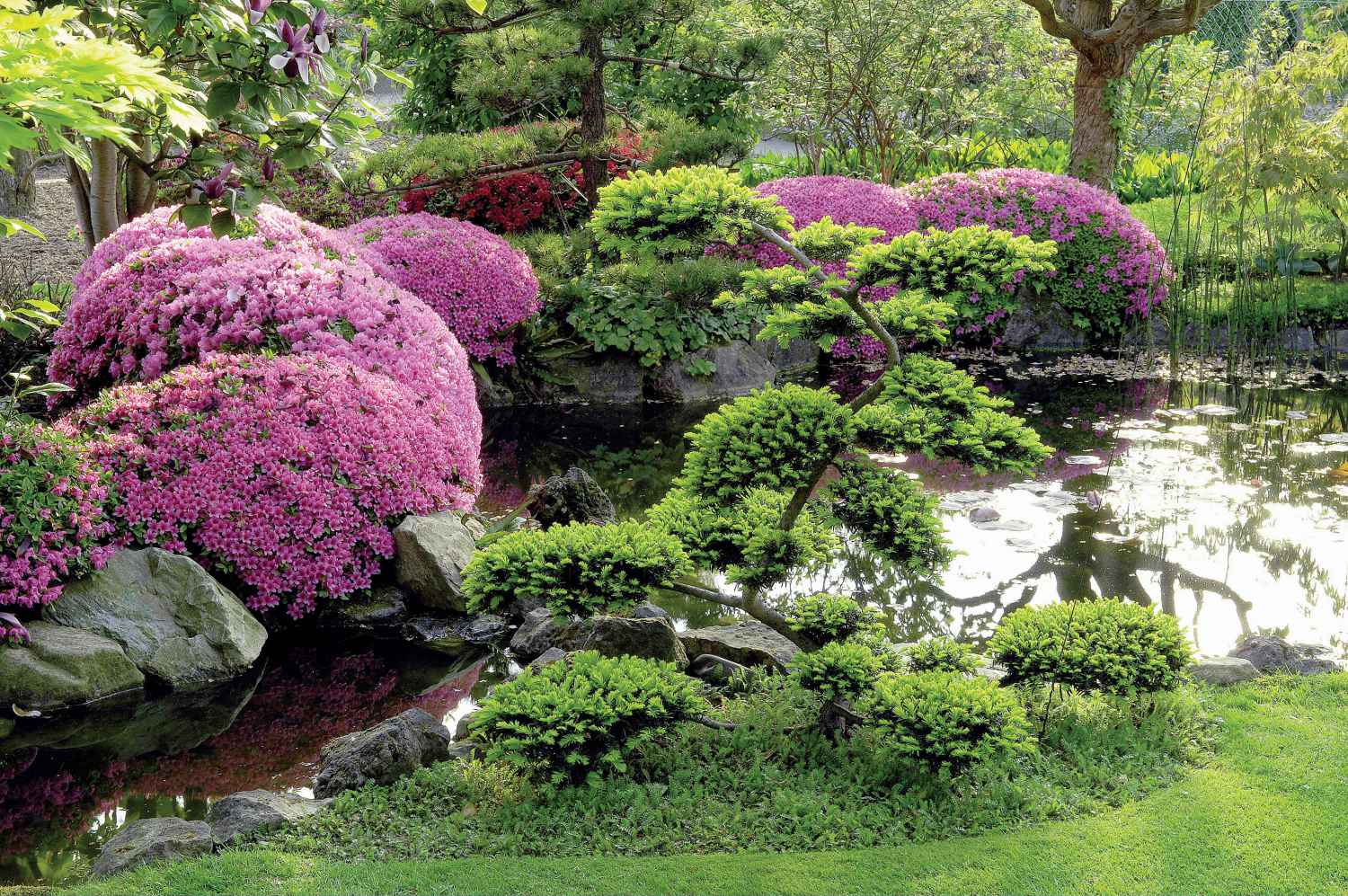 Ogrody małe i dużePrzepis na ogród japoński? Kiście fioletowych glicynii i bzów oraz olbrzymie kępy misternie przyciętych azalii w różnych odcieniach różu, czerwieni i koralu.