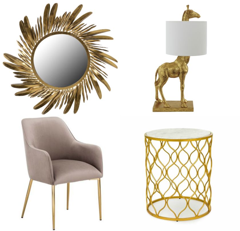 Złociste stoliki, lustra w kształcie słońca, żółte pufy - to lato jest naprawdę gorące. Modne w tym sezonie złote elementy rozświetlają wnętrza i dodają im pałacowego szyku.