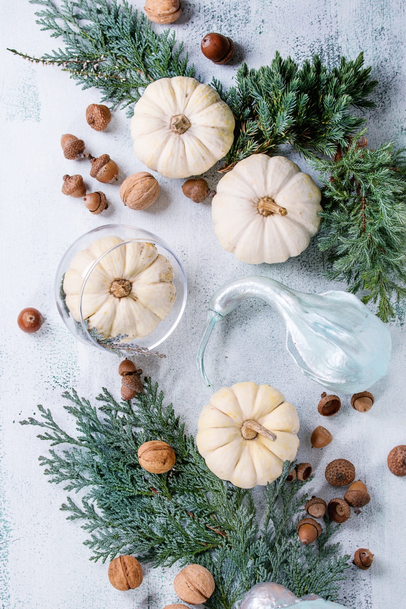 Dekoracje z białej dyni są nie tylko efektowne, ale także ponadczasowe. I pasują nawet do najbardziej eleganckiego wnętrza!