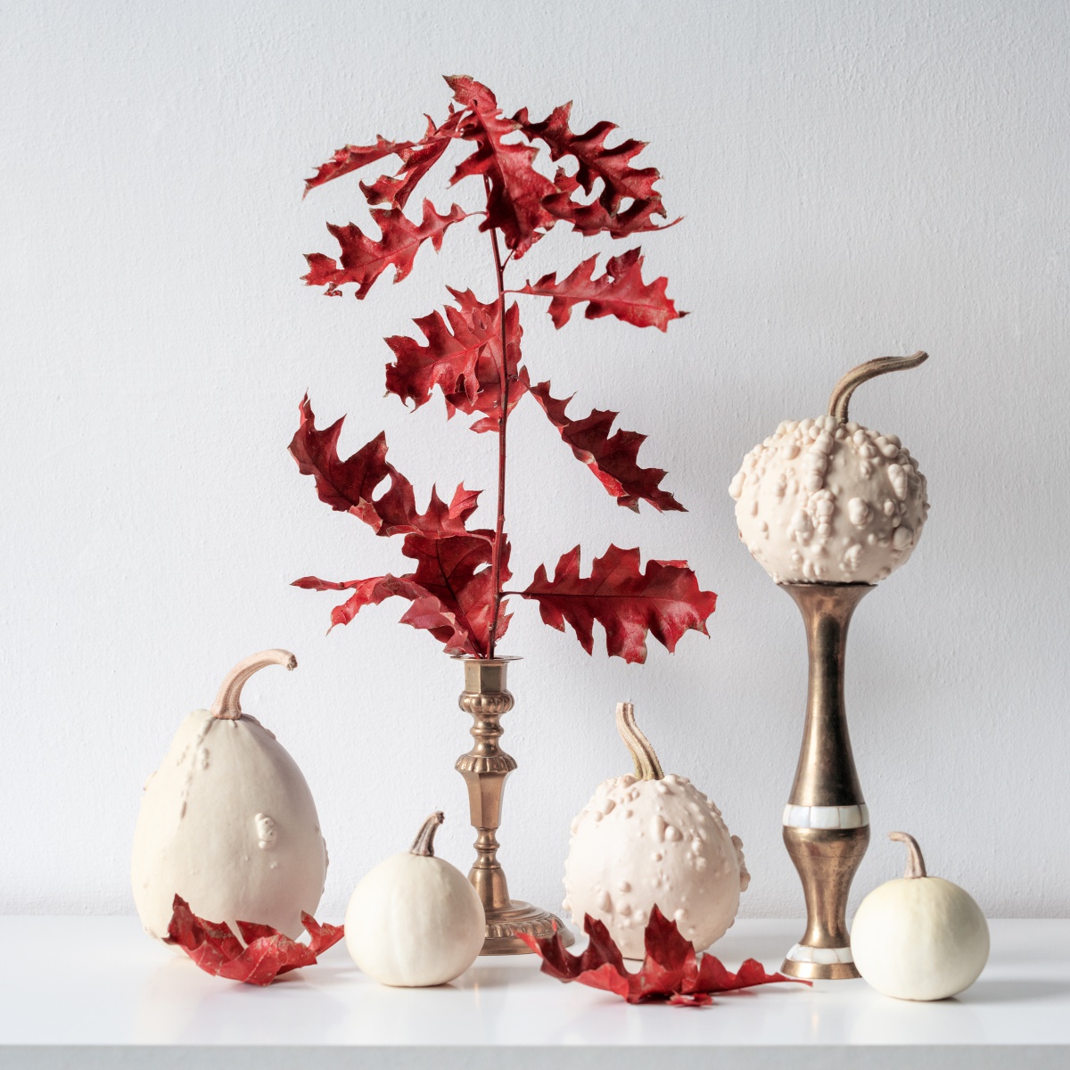 Dekoracje z białej dyni są nie tylko efektowne, ale także ponadczasowe. I pasują nawet do najbardziej eleganckiego wnętrza!