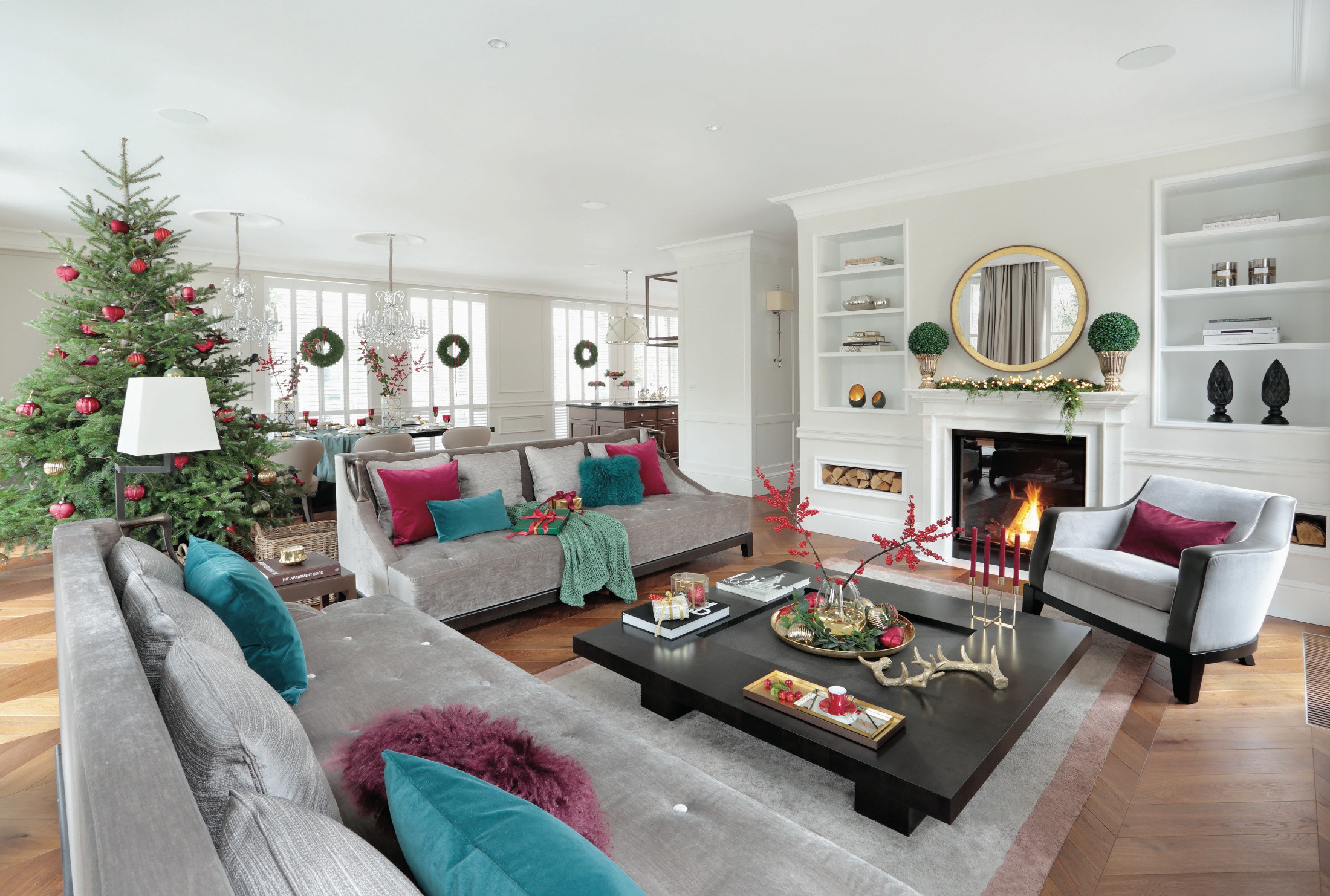 Świąteczny dom – klasyczne białe wnętrza udekorowane na Boże Narodzenie w świątecznych kolorach