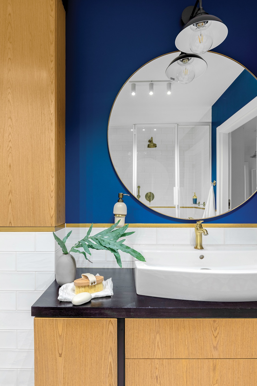 Indygo lubi biel – mieszkanie w bloku urządzone w odważnych, kontrastowych kolorach