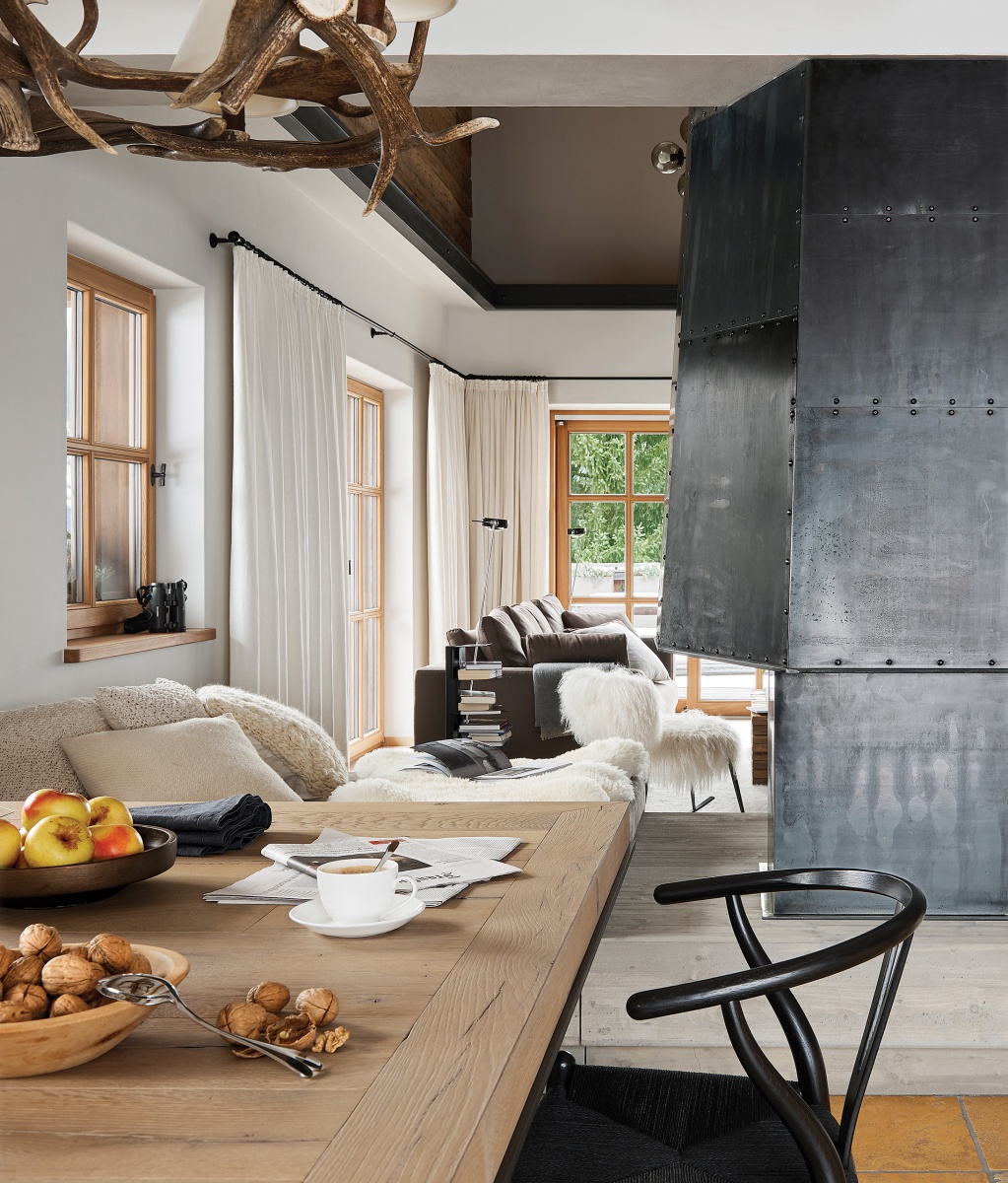 Styl rustykalnyAle ziąb! Jesteśmy w narciarskim raju. W przytulnym salonie bucha ciepło od nagrzanego do czerwoności kominka, ale i tak wszystkich ciągnie na ośnieżony taras.