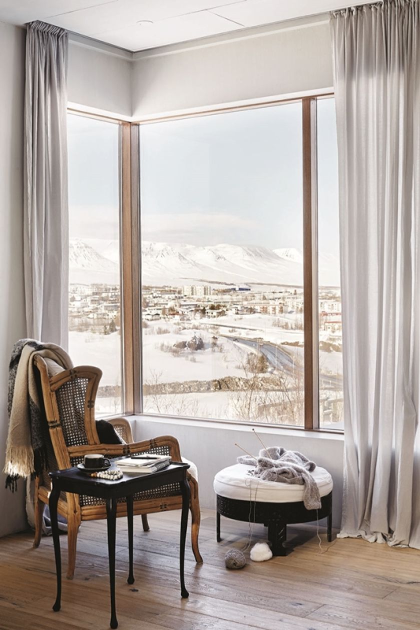 Margaret urządziła wnętrza w szarościach i drewnie, w stylu skandynawskim. Ma nie tylko fantastyczny widok z okna. Wystarczy, że wyjdzie z domu, założy narty i od razu rusza na stok.