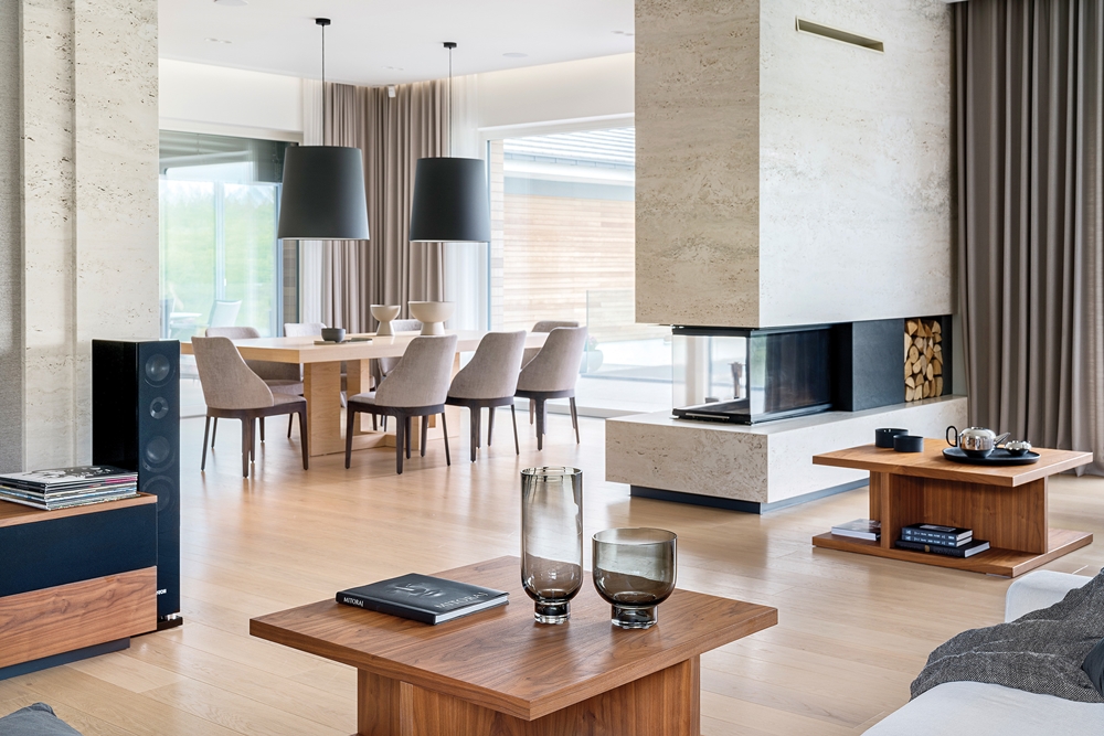 • salon z kominkiem