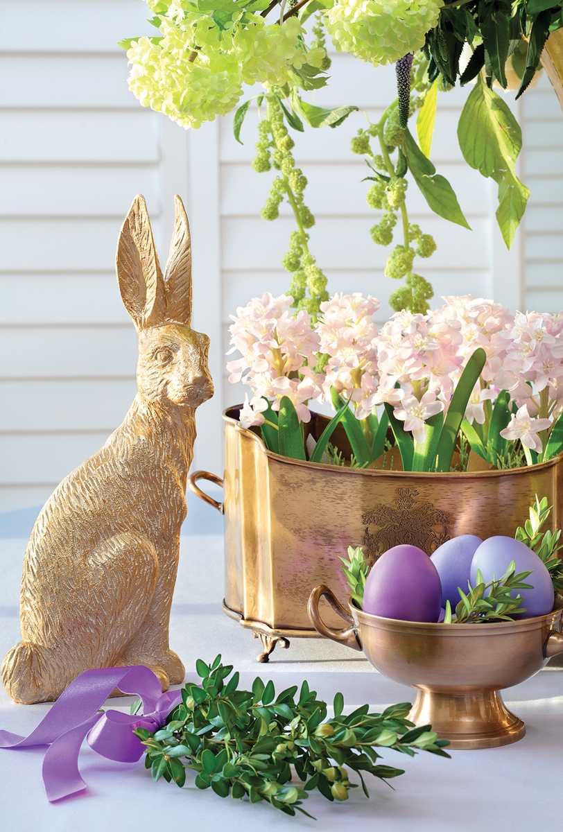 Polski dwór urządzony z francuskim rozmachem. Udekorowano go na Wielkanoc w fioletowo-zielonych kolorach