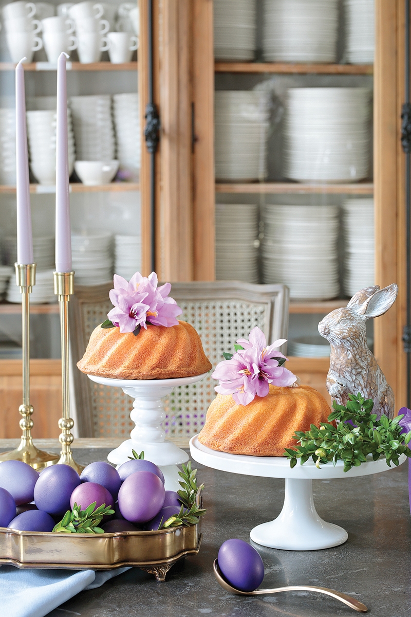 Polski dwór urządzony z francuskim rozmachem. Udekorowano go na Wielkanoc w fioletowo-zielonych kolorach