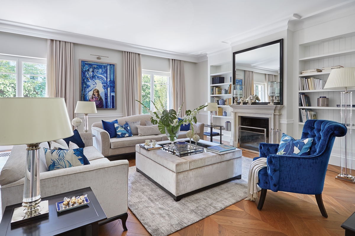 Willa pełna tajemnic – klasyczne wnętrza z niebieskimi i srebrnymi akcentami