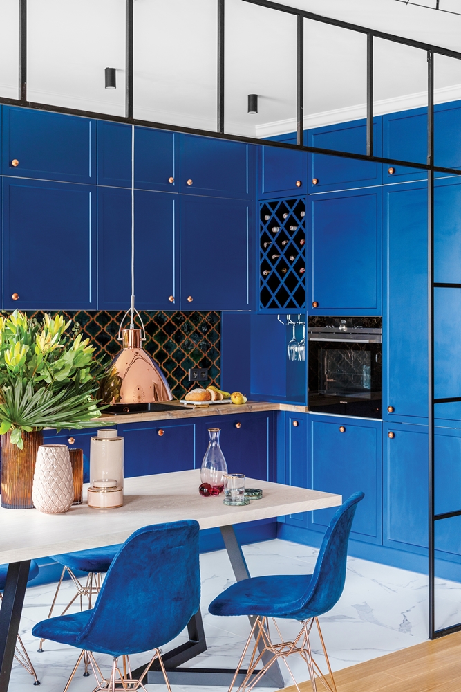 niebieskie fronty mebli kuchennych